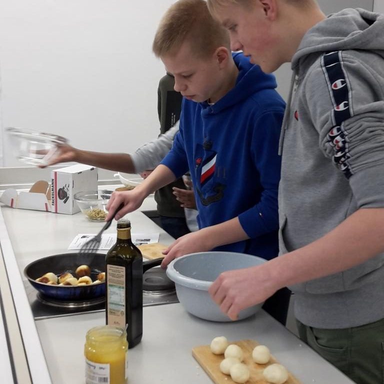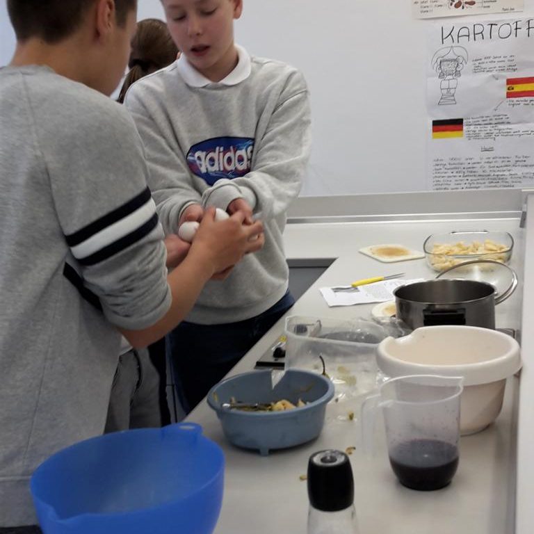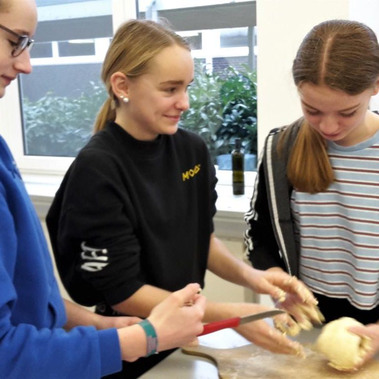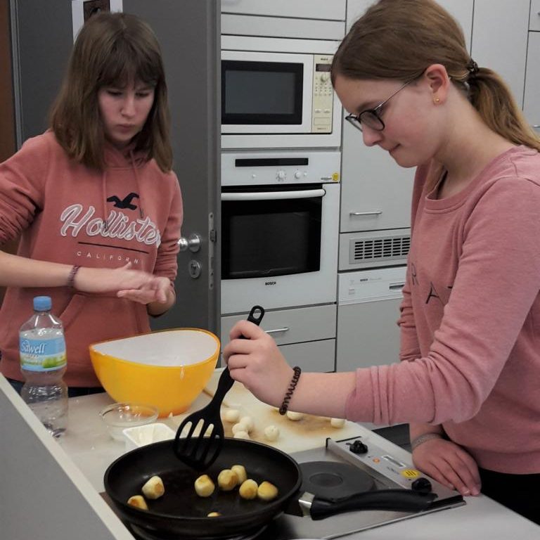 Am 17.01.2020 hat die Klasse 8b während des Lateinunterrichtes einige römische Rezepte nachgekocht. Unter den Rezepten befanden sich Globuli, welche wir heute unter dem Begriff Krapfen kennen, Libum, das damalige Brot der Römer, Patina de Piris, ein Birnenauflauf, Moretum, ein Fetadipp, und Epityrum, ein Dipp aus Oliven. Überraschen breitete sich aus, nachdem wir bemerkten, dass es im alten Rom noch keinen raffinierten Zucker gab und daher alles mit Honig und Kräutern gewürzt werden musste. Als nach einer Stunde fleißigem Kochen und Backen die Gerichte fertig waren, konnten die Schüler endlich alles probieren und tauchten in die Welt der Römer ein. Nach der Stunde waren die Meinungen der Schüler eindeutig, die Rezepte aus dem alten Rom beweisen sich selbst heute noch. Falls auch du neugierig geworden bist, haben wir hier unsere Favoriten.