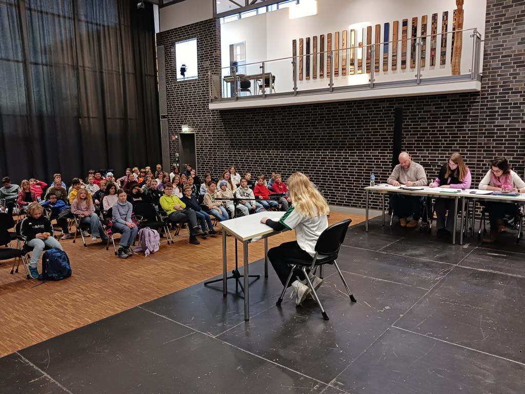 Auch dieses Schuljahr nimmt das Geschwister Scholl Gymnasium in Stadtlohn erneut am Vorlesewettbewerb teil. Zunächst wurden die Klassensieger/innen bestimmt, die in der Aula zum schulinternen Wettbewerb antraten. Diesen gewann Sophia Hecking aus der 6c, die das GSG bei der kommenden Regionalrunde vertritt.